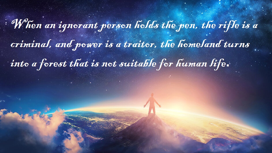 13.When an ignorant person holds the pen, the rifle is a criminal, and power is a traitor, the homeland turns into a forest that is not suitable for human life.